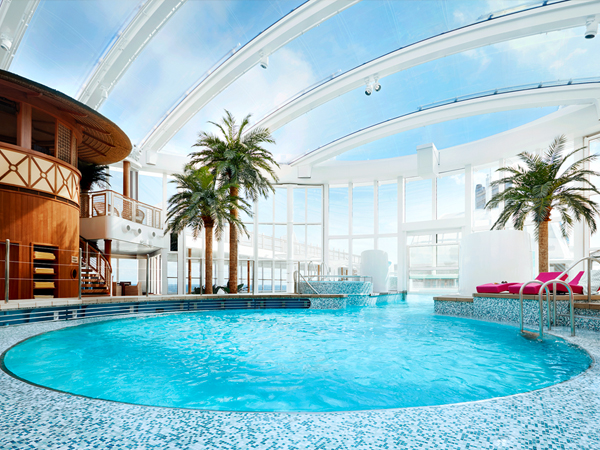前部游泳池(位于18号甲板):新设的户外泳池,配有日光浴区和酒吧,提供前方海景。
