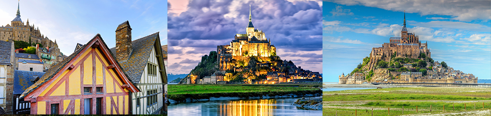 它方圆四野是平坦开阔的流沙滩涂。进山的道路只有白天显现,一到傍晚海水就奔腾而至将圣米歇尔山包围,使其成为一座孤岛,茕茕独立于天地间。